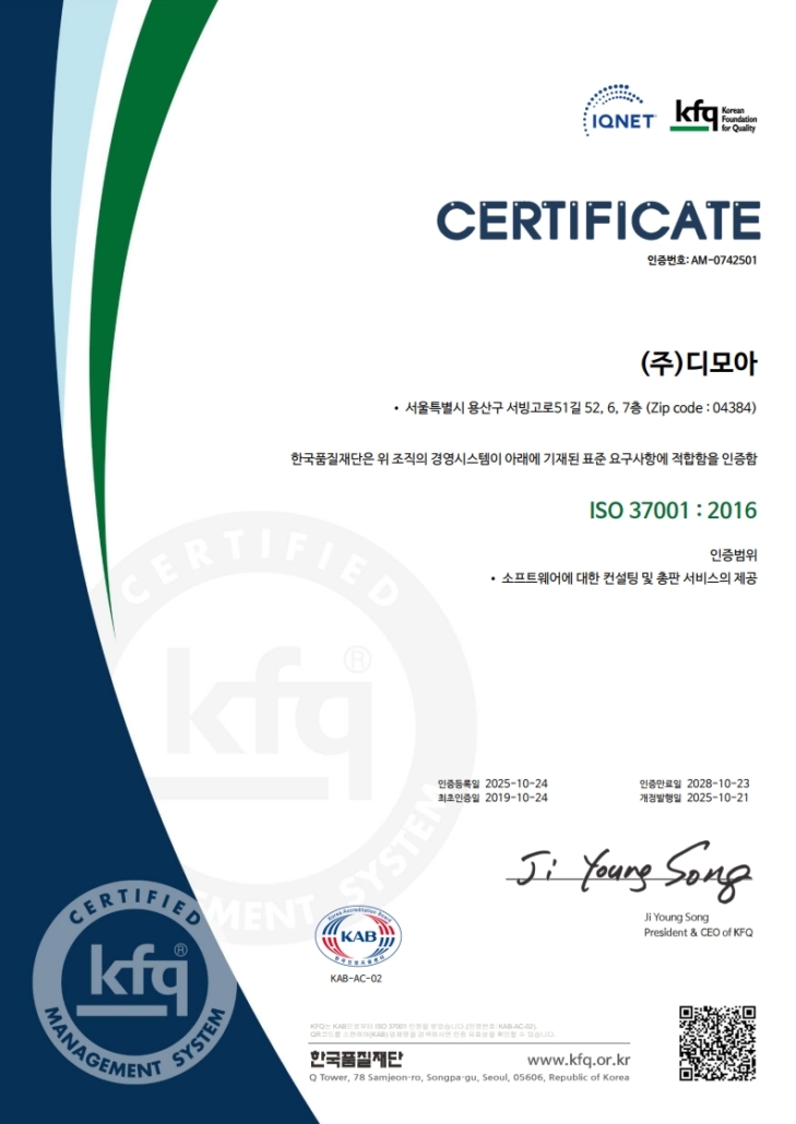 디모아는 신뢰받고 존경받는 기업으로 성장, 발전하기 위해 모든 고객, 임직원, 협력회사 및 파트너,